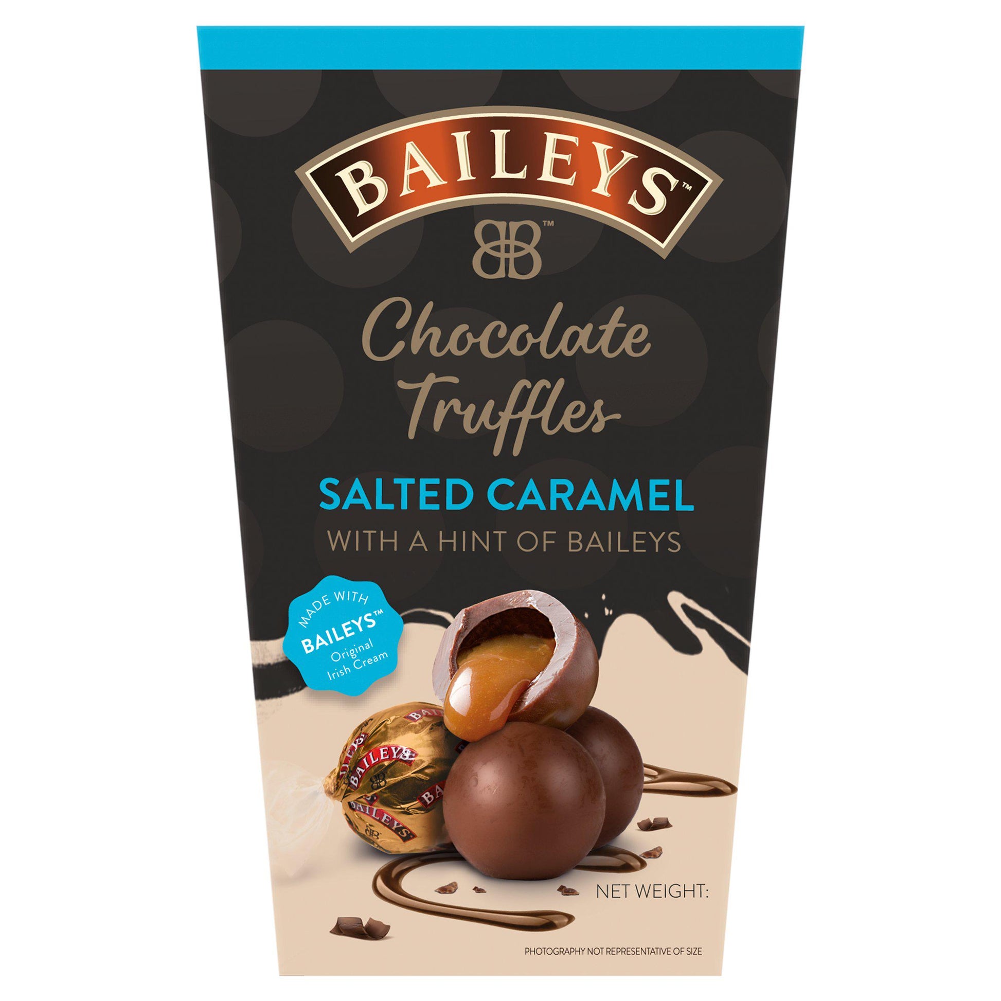 Milk chocolate truffles with salted caramel and a hint of Baileys flavoured centre (made with Baileys™ original Irish cream). 205g box.